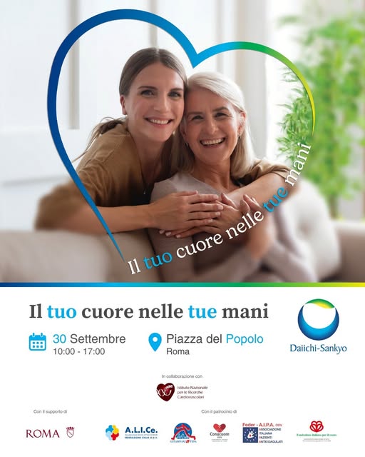 Siamo felici di annunciare che la nostra associazione sarà presente il 30 settembre, dalle 10:00 alle 17:00, in Piazza del Popolo a Roma per partecipare all’importante iniziativa “Il tuo cuore nelle tue mani”, promossa da Conacuore e Daiichi-Sankyo. Sarà una giornata dedicata alla prevenzione cardiovascolare, alla consapevolezza e alla